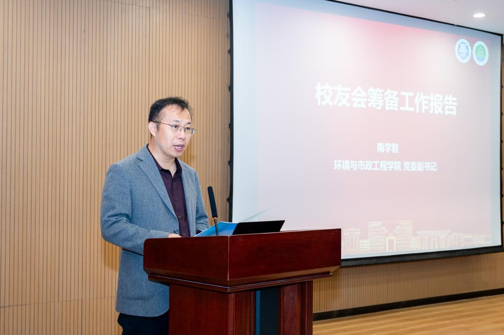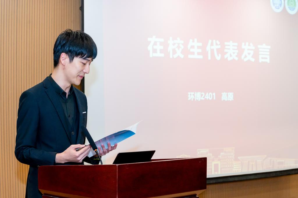 在校生代表高原分享了学习成长感悟,表达了向校友前辈学习、传承学院精神的决心;给排水97级校友董滨结合自身职业经历,分享了在环境与市政工程领域的实践经验,并表示将积极依托校友会平台,为学院人才培养、产学研合作贡献力量。