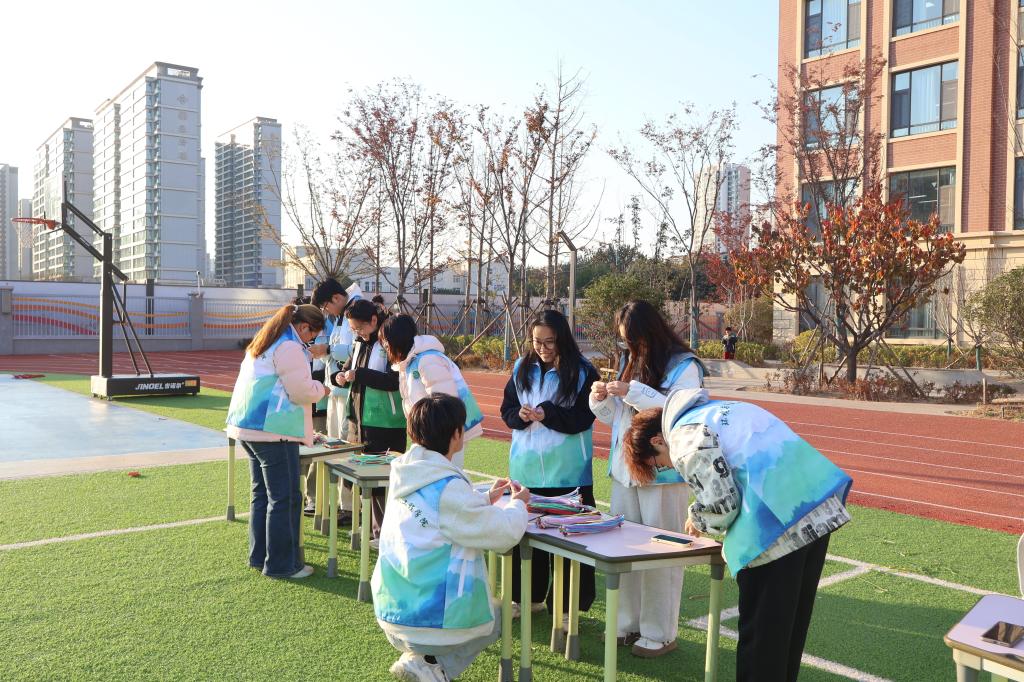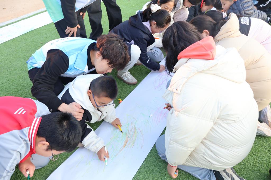 在活动策划阶段,学院志愿者团队在青岛理工大学大学生心理健康教育中心的专业指导下,结合六年级学生心理发展特点与实际需求,共同设计了包含涂鸦绘画、手工制作、体能释放、团队协作及集体舞蹈在内的五大结构化体验环节,确保活动兼具趣味性与心理疏导实效。
